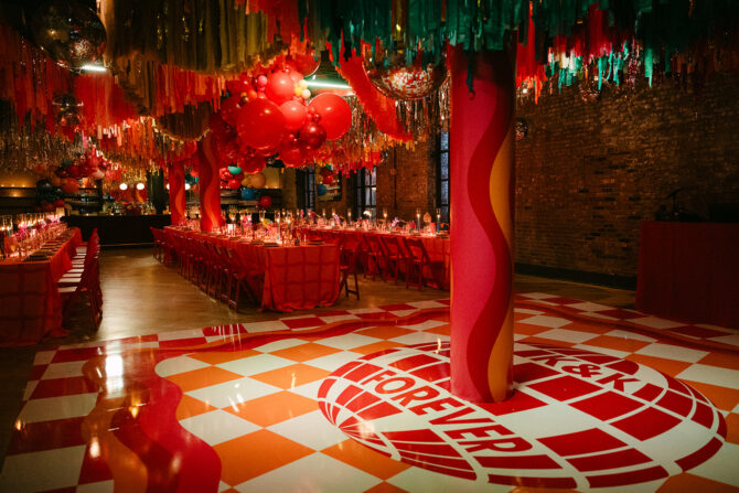 “Now, more than ever, couples are craving weddings that feel like them: fun, bold, and unapologetically vibrant. In 2026, we’re going to see color used in bigger, bolder, and more intentional ways,” says wedding planner Jove Meyer. “Think color-blocked ceremony moments, fully color-drenched reception spaces, and high-contrast draping that pops against neutral architecture. Color is making its way into every detail from stationery and signage to menus, cocktails, florals, and even guest dress codes. Couples are moving away from tradition and toward experiences that feel immersive, energetic, and joyful and color is the perfect vehicle to bring that vision to life.”
