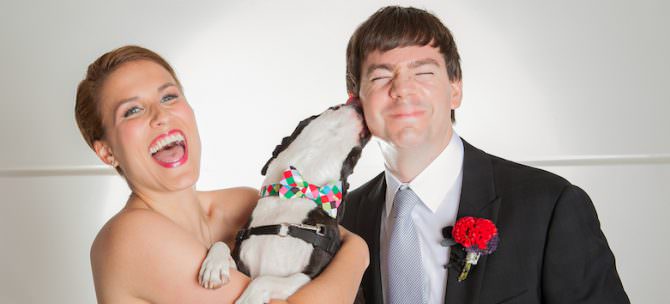 There are a million things to think about on your wedding day, and whether or not your dog needs to go out should not be one of them. Erika Flugge of Erika Flugge Photography suggests asking a non-wedding party friend or family member to be on dog duty. Consult with your dog deputy beforehand to arrange things like food, water and transportation. “I once had a couple bring their dogs at the beginning so they could be part of the ceremony and then someone took them home afterward,” Erika says. Even if your dog is well-trained and low maintenance, it won’t hurt to have someone there for either a reassuring pat on the head or to simply help your dog feel at ease during a chaotic time.