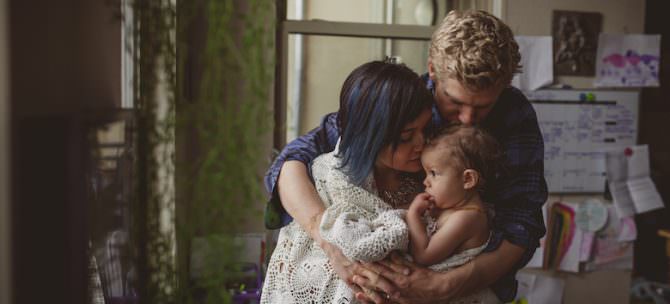 “Rumi was born in the very same kitchen you see photographed here. I really wanted a natural birth in the comfort and privacy of my own home. Andrew took a little convincing but was very supportive after I explained how safe and convenient it is,” explains Natasha. “We were attended by two midwives and a doula and after 17 hours of labor, Rumi was born in the birthing pool we set up in he kitchen. She has a bunch of dark hair and was long and lean just like her dad. She heard his voice and immediately started to look for him. Mona — the dog — heard Rumi cry and went crazy trying to figure out what she was. I was overjoyed that I had actually accomplished a smooth and beautiful natural labor you and delivery. It was one of my proudest moments.”