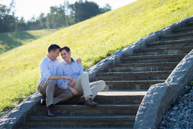 Saville Dam in Barkhamsted, Conn., is a gorgeous locale for a photo session, but Adam and Rob were the true center of this charming shoot. The D.C. locals met with the talented Antonio Rocha to announce their engagement to the world. The dam, a polar opposite of the bustling metropolis they call home, is quaint, full of trees and the perfect setting for this down-to-earth couple.
