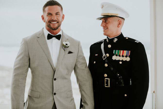 On a beach in Pensacola, Florida, waves crashed along the shore behind Adams and Greg as they said “I do” surrounded by their friends and family. These dapper gents were all smiles from when they started getting ready before the ceremony to when they took their celebratory spin on the dance floor, and the joy permeating through So Life Studios’ photographs is contagious!