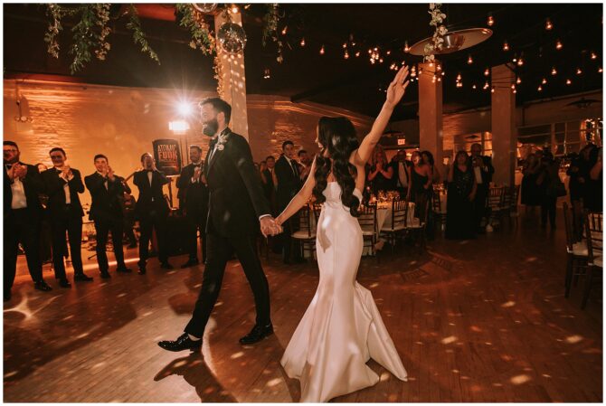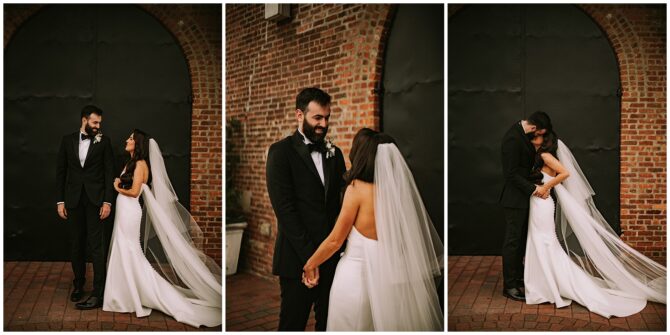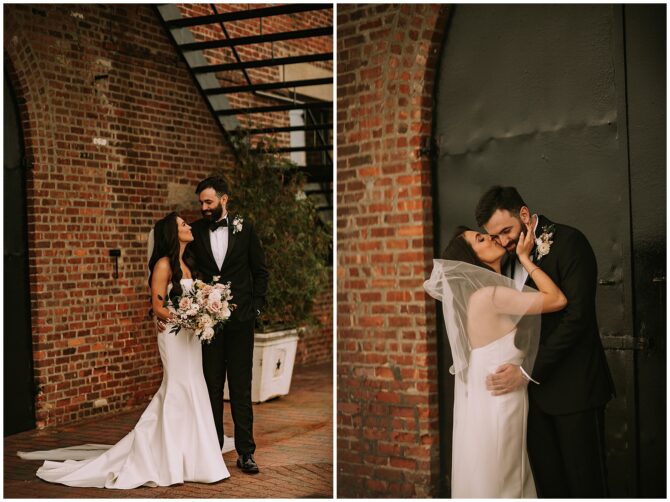 Years later, Kevin planned a heartfelt proposal in Prospect Park, just steps from their apartment. “On a private path on the edge of the lake, Kevin got on one knee in the mud of a recent storm,” Victoria recalled. Getting engaged in Brooklyn made it clear that Victoria and Kevin wanted an urban chic celebration in the heart of NYC. After visiting just a few venues, The Liberty Warehouse stole their hearts. “The city views, the historical look, and the incredibly warm staff all added to the uniqueness of this venue,” they said.