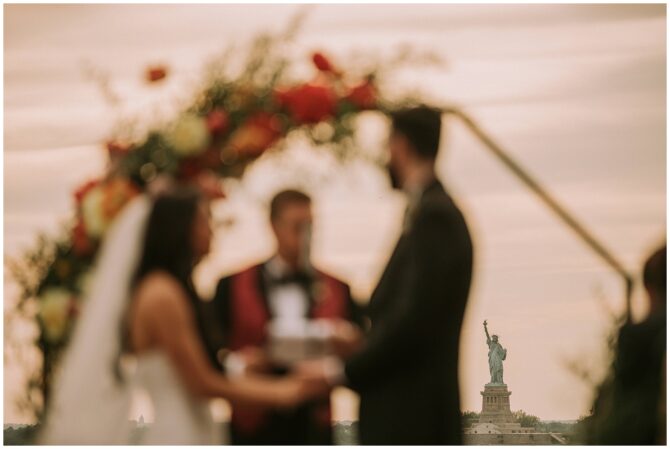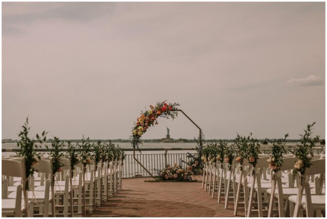 The venue’s location offered a picture-perfect backdrop of the Statue of Liberty and Manhattan skyline, quintessentially New York.