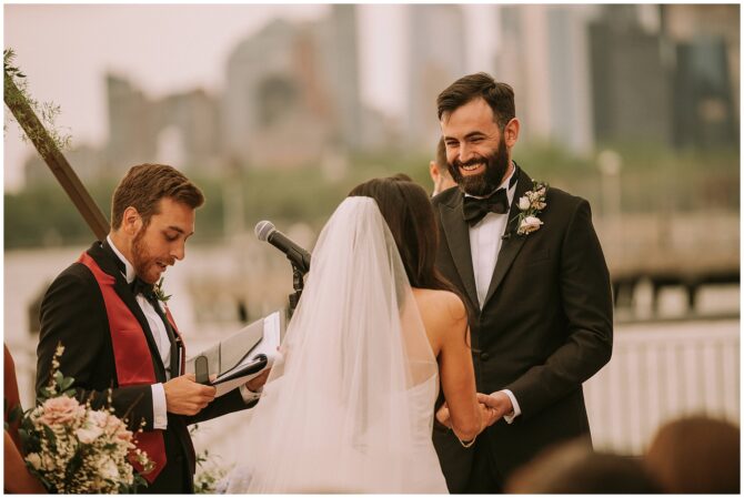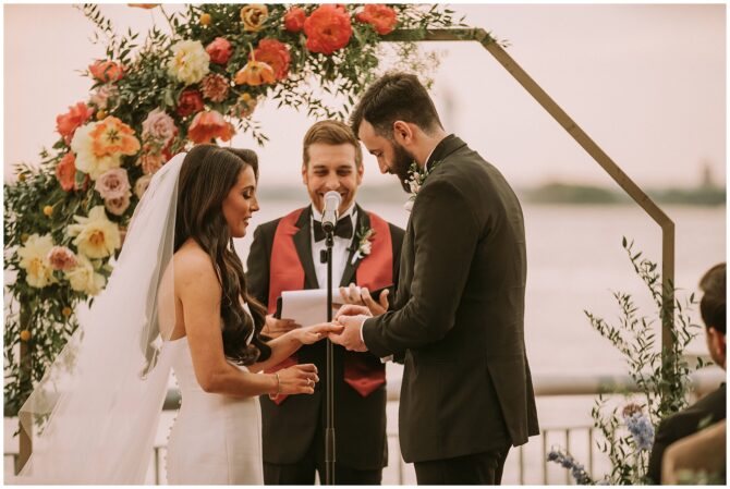 Set against sweeping harbor views, this Brooklyn wedding at The Liberty Warehouse channels pure New York glamour with a modern, city-chic edge.