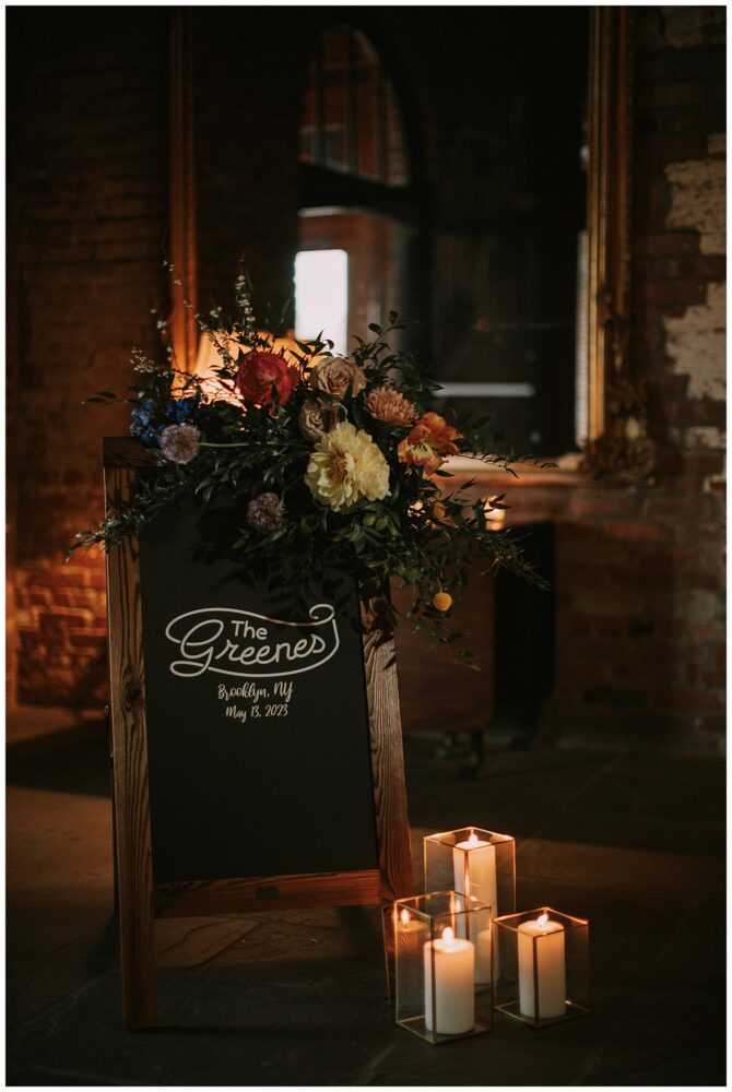 The wedding’s design reflected the couple’s daily life in Brooklyn. They drew inspiration from “storefronts along our favorite streets, desserts on the waterfront in Red Hook, and the florist Kevin had been using for my birthday flowers for years.”
