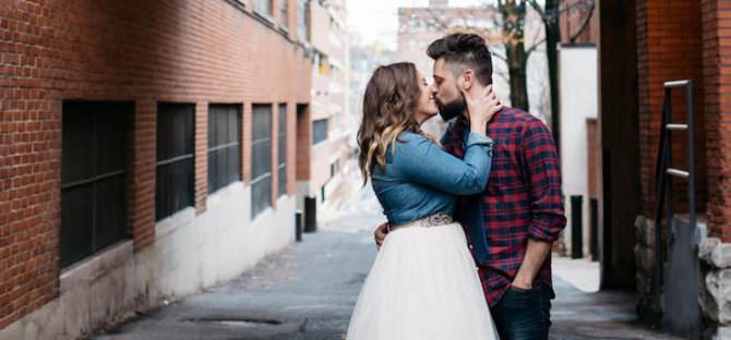 To Claire, three and a half years felt like forever. So when Brian attempted the impossible, to surprise the un-surpriseable Claire, he managed to not only pull it off, but also seal it with a ring. Claire and Brian traveled from their home in New Jersey to Lancaster, Penn., to take their engagement photos, documented beautifully by EarthMark Photography. “In the beginning of our relationship, Brian was living in Lancaster, and I was in New Jersey,” Claire says. “Every week I would take a two hour drive to visit him and we would spend our days off exploring downtown. It felt right to have our engagement shoot in the little city where we fell in love.”