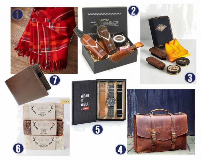 3. Shoe Polishing Kit: Make sure they shine from head to toe with this shoe polishing kit. Kit includes a soft brush, a firm brush, black and neutral polish and a yellow cleaning cloth, all presented in a dapper canvas case. Available at Modcloth.com for $30