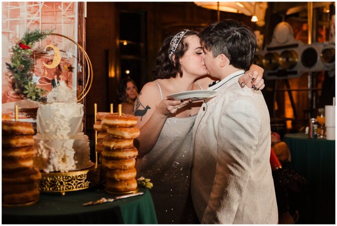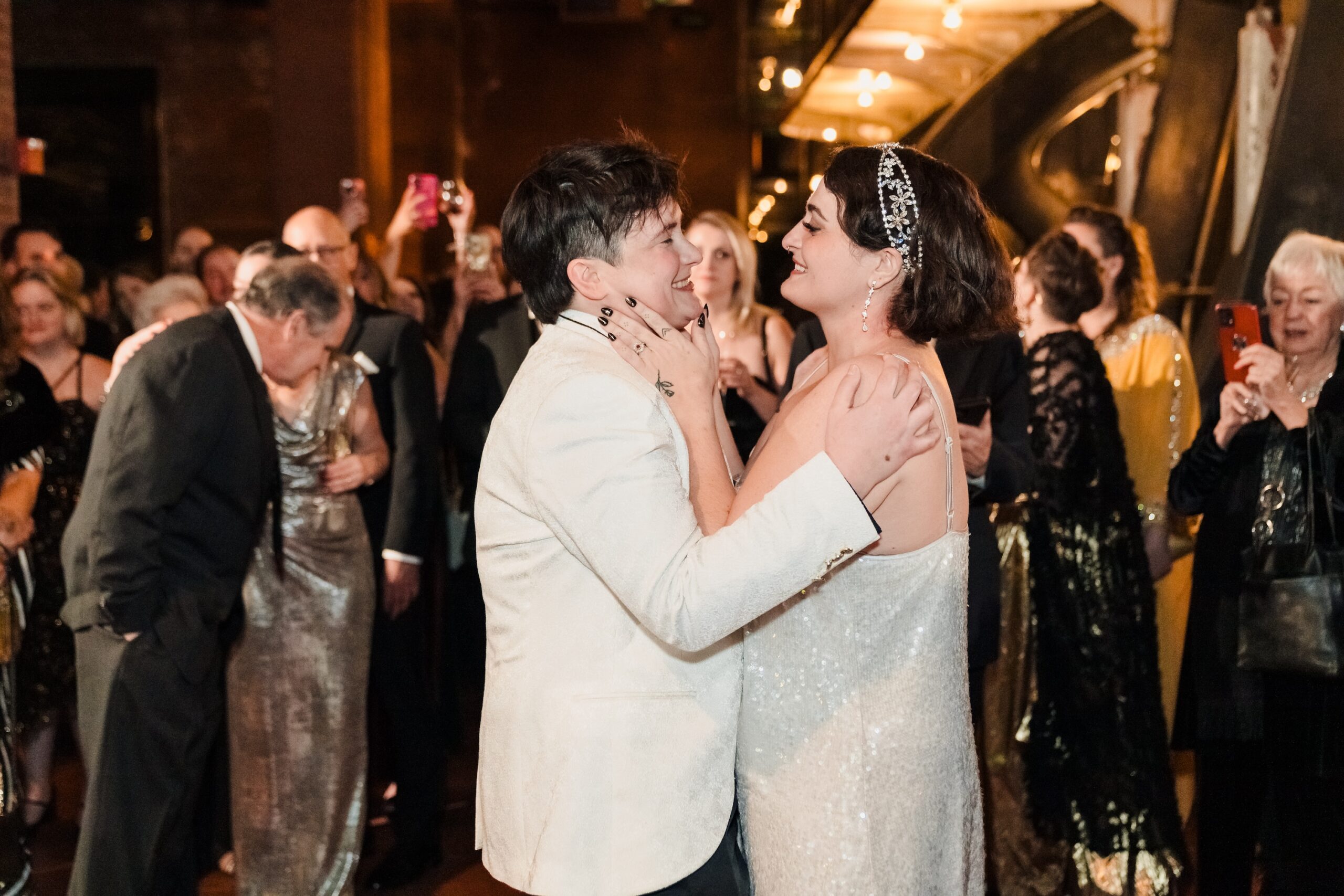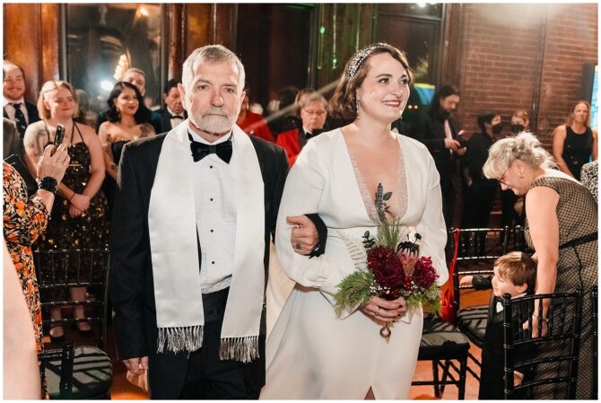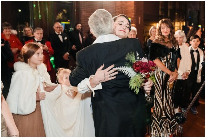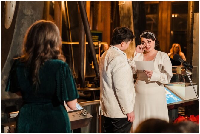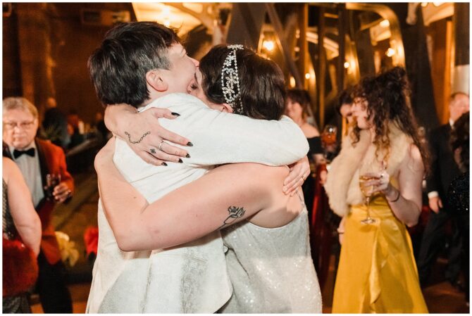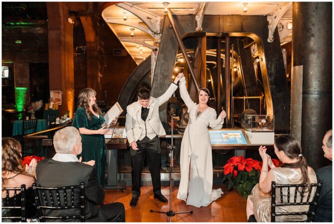 A festive Art Deco–inspired winter wedding at Boston’s Metropolitan Waterworks Museum blends vintage fashion, meaningful heirloom details, and a heartfelt LGBTQ+ love story.
