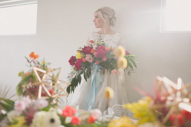 A talented equality-minded Idaho wedding collective came together to proudly show off their skills and represent their state in style. Inspired by the Midwest state’s nickname, “The Gem State,” Bliss Events designed a space infused with geometric shapes and pops of color in The Owyhee, one of Boise’s oldest buildings. The results, captured by Ampersand Studios (who also designed the stationery!), are a delicious sorbet palette paired with pops of neon and gold, flirty and modern graphic elements and frothy florals.
