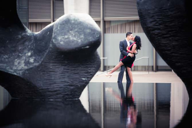 Joseph and Avita are both entertainment attorneys – and the entertainment part is not lost on them! Support of the arts is how they met, interest in the arts is how they fell in love, and the art culture in New York City ended up being the theme of their engagement shoot. Taken by the talented Angelica Criscuolo, their engagement shoot at Lincoln Center definitely captures the essence of this artsy couple.