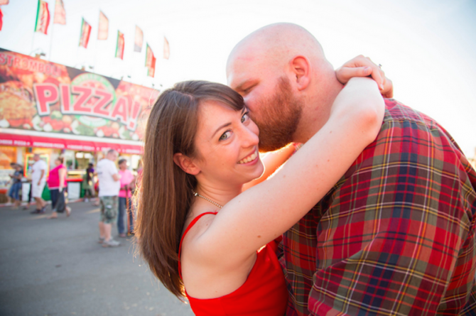 We all have childhood sweethearts, but who can say they’ve actually married theirs? Not many of us — unless you’re a couple like Kait and Nick. They dated for eight years before getting engaged, and were together before most people even met their own spouses. Their engagement session, a fun and playful state fair shoot done by Cate Gravatt of Violet Iris Studios, was chosen specifically because of how fun it is — it matches their personalities so well! “We joke around with each other and tease each other a lot,” notes Kait. “We felt as though the fair represented our personality as a couple.” This session shows how Kait and Nick have grown as a couple but also retain that same young love that got them together so many years ago.
