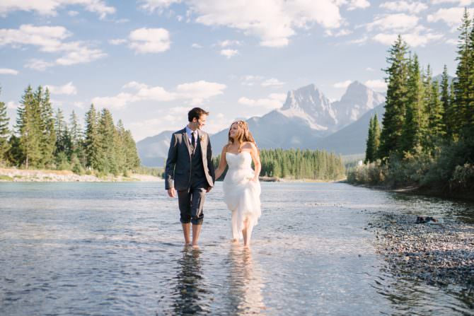 The Venue: The small town of Canmore’s undeniable charm paired with the natural beauty of a small lake, meadow and mountain views made it a perfect fit for the couple’s vision of a cozy, intimate celebration. They had the ceremony in the middle of the meadow and then headed to Miners’ Union Hall for the reception.