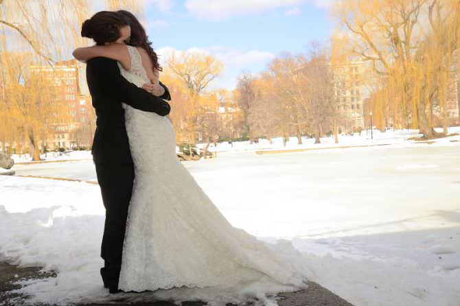 Two whirlwind days later, Lauren was holding her white dress up over her black snow boots, sprinting across busy intersections as they headed toward the Boston Public Garden—“I can’t even describe how thrilling that was for me,” she adds, smiling.