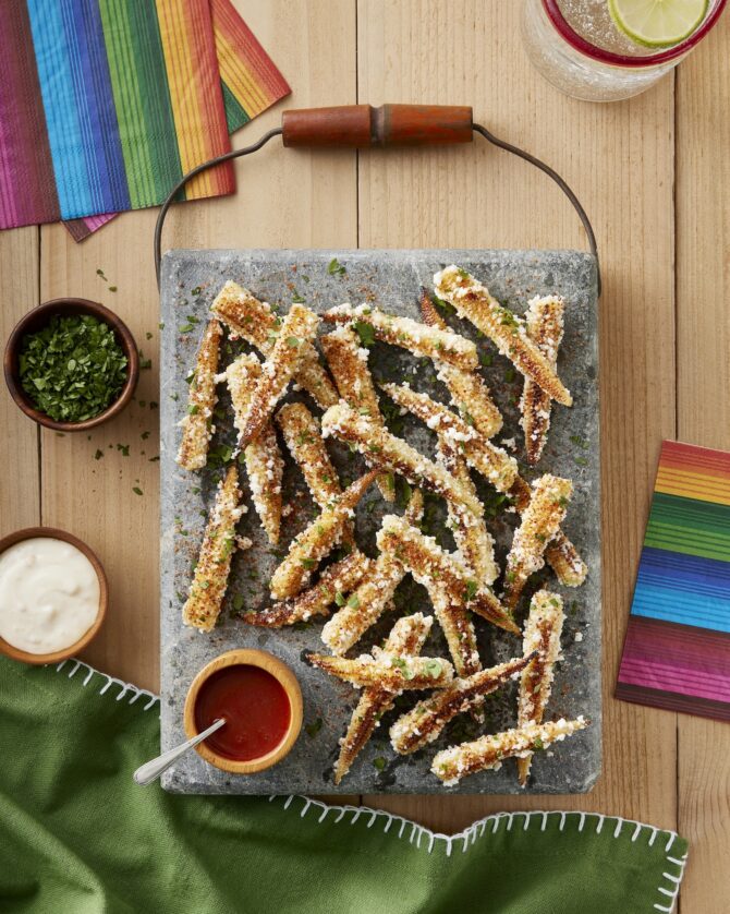 Mexican street corn is always a crowd-pleaser, and this version keeps the mess at a minimum. Charred baby corn are slathered with a slightly sweet mixture of mayo, garlic and lime and topped with lots of queso fresco and fresh cilantro.
