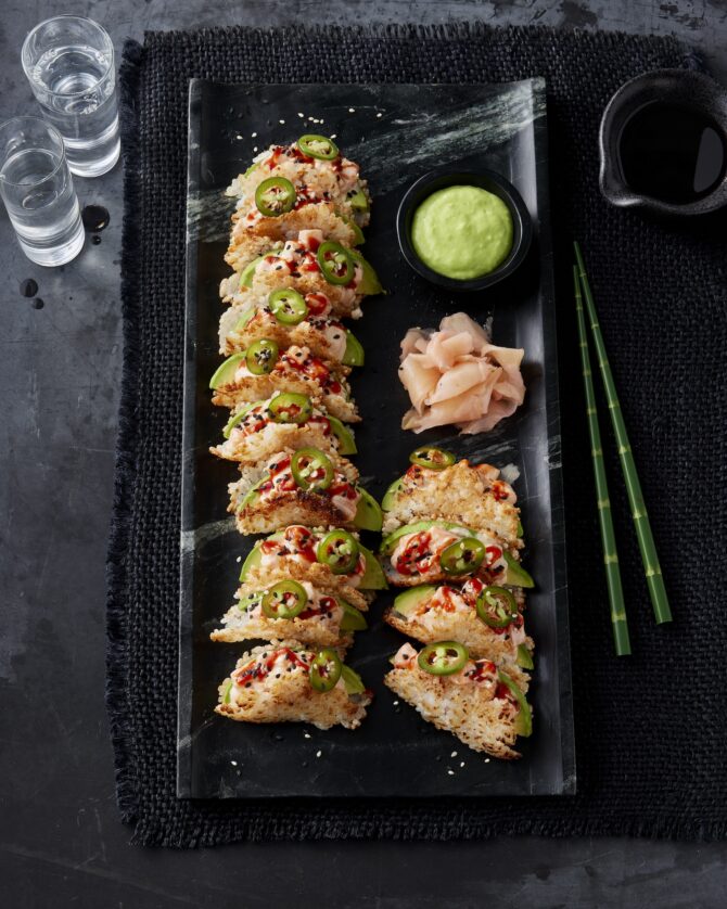 “These bites are a fantastic fusion of two of my favorite foods: sushi and tacos!” exclaims Brown.