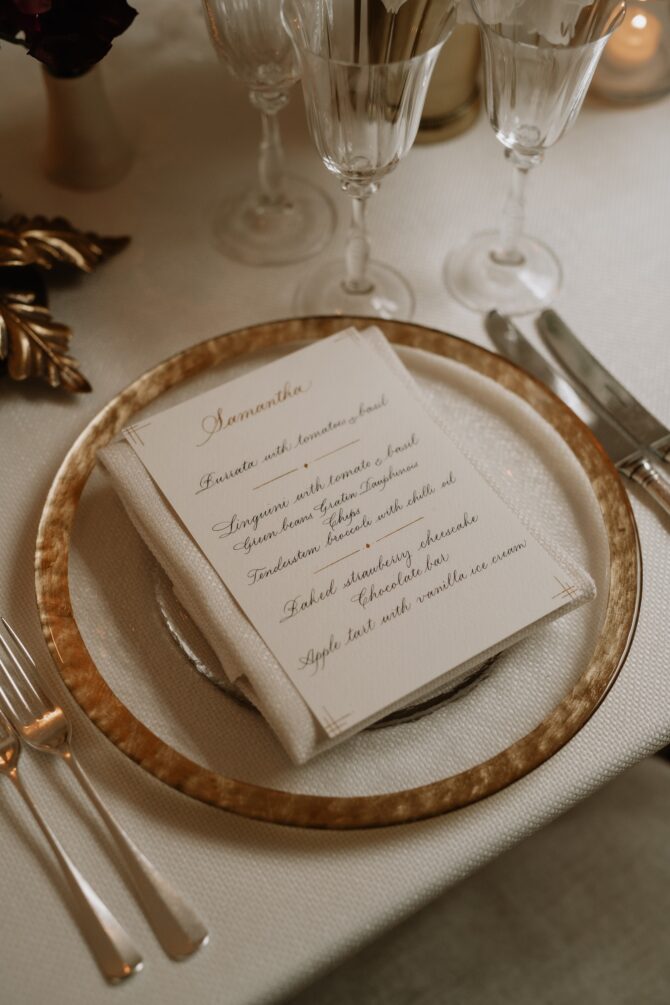 “I recommend inviting no more than 30 guests in order to create a cozy atmosphere that fosters meaningful conversations,” says Jocelyn Hunter, owner of Twickenham House. “A smaller guest list allows the service team to focus on each individual, enabling everyone to relax and fully enjoy a multi-course meal while remaining seated. This arrangement makes the event feel more like dining at a restaurant.”