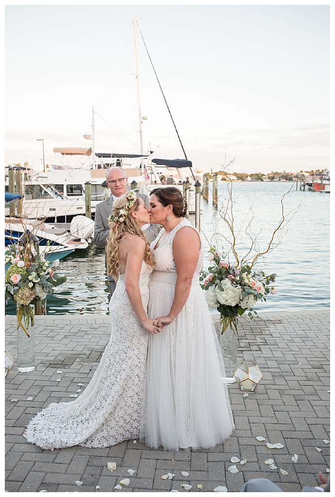 Ever since Alicia was a little girl, she’s been going to visit her family in Sarasota, Florida, and once her and Meg started dating, Meg joined in on the tradition as well. So when they began to talk about where to hold their wedding, it seemed like the perfect place. “We both have always dreamt of getting married somewhere warm and near the water,” Meg says. “It’s also a far cry from Massachusetts, and we wanted our guests to experience the magic and beauty of the area.”