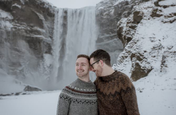 It’s easy to understand why locals believe that fairies and giants still exist in their land — Iceland’s dramatic, nature-driven landscape is pure magic. It was in this otherworldly destination that Marc got down on one knee underneath the Northern Lights and proposed to Paul. A year later, the Scottish couple found themselves tying the knot in the snow-clad country, and celebrated with an engagement session (also referred to as an Iceland pre-wedding session) days before they exchanged vows. From flirty snowball fights, adorable pony-sized Icelandic horses and frozen waterfalls, Photos by Miss Ann captured the magic from both the dreamy location and Marc and Paul’s love.