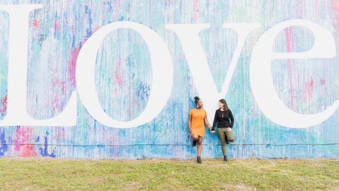 When Sarah and Dalia were thinking of the perfect location to take engagement pictures, Miami Beach was an easy choice. “Miami is our city where we met and fell in love and lived for so long,” Sarah says. “Wynwood, Miami, is a place we go almost every other week, and South Beach is our neighborhood. It made sense to reflect us.” Against the colorful Wynwood Walls and along the beach, Yanique Bonelli Photography captured this glowing couple of eight years for their gorgeous engagement session. We love the way Sarah and Dalia look at each other, proving that even after eight years, the spark doesn’t have to fade!