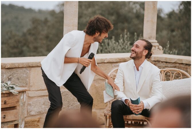 “When it came to choosing the venue, we knew it had to be authentic, one of those places that takes your breath away the very first time you see it,” they explained. The masía offered wide-open views of the sea, the scent of lavender, and a profound sense of history.