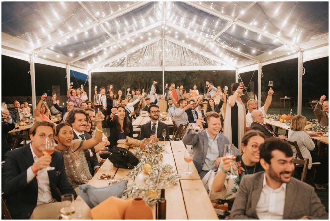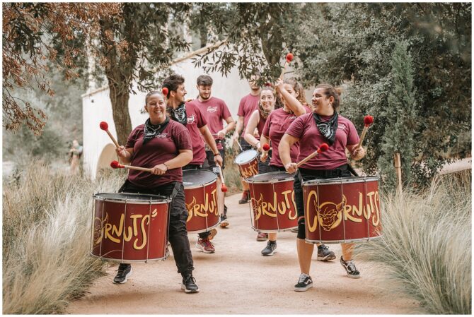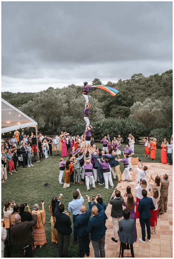 The entertainment was designed to maximize joy and connection. The party started with live Catalan rumba by Albert's cousin, Dani Pubill, and later saw the arrival of the Castellers iconic human tower builders.