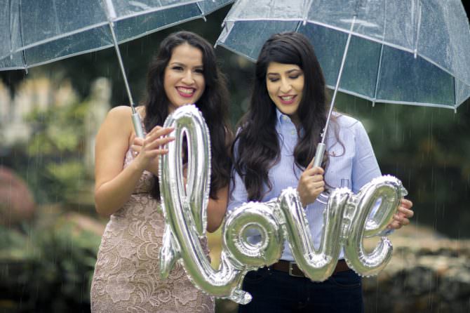 A rainy forecast is every soonlywed’s worst nightmare for their wedding day, but as today’s e-sesh proves, a little rain and some trusty umbrellas can make for one incredibly romantic engagement session. The Hiking Mermaid and Estes Park Photographer captured Kristina and Victoria’s rainy engagement shoot at McNay Art Museum in San Antonio, where even a thunderstorm couldn’t dim this glowing couple’s smiles!