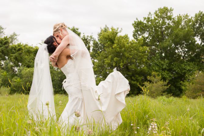 In the small Nebraska town where they both lived, these two beautiful brides fell in love. And four years later, they wanted to celebrate their relationship and commitment to each other. But, at the time of their ceremony, getting married was still illegal in Nebraska. They turned to their neighboring state of Iowa — the fourth state to legalize same-sex marriage — and set their eyes on the gorgeous Jasper Winery in Des Moines, Iowa. Andrea Bibeault: A Wedding Photojournalist snapped pictures of the radiant brides as they began the next journey of their lives together surrounded by the people they love.