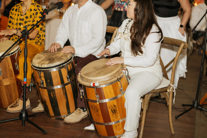 The magic of Plena lies in its ability to turn a group of observers into a single, celebrating community. “In my experience planning weddings in Puerto Rico, what truly elevates the experience is when Plena becomes interactive. When guests are invited to clap, dance, and follow the rhythm, the celebration transforms into a shared moment of joy,” adds Damaris Rivera, boutique and luxury wedding planner at Exclusive Weddings & Events PR.